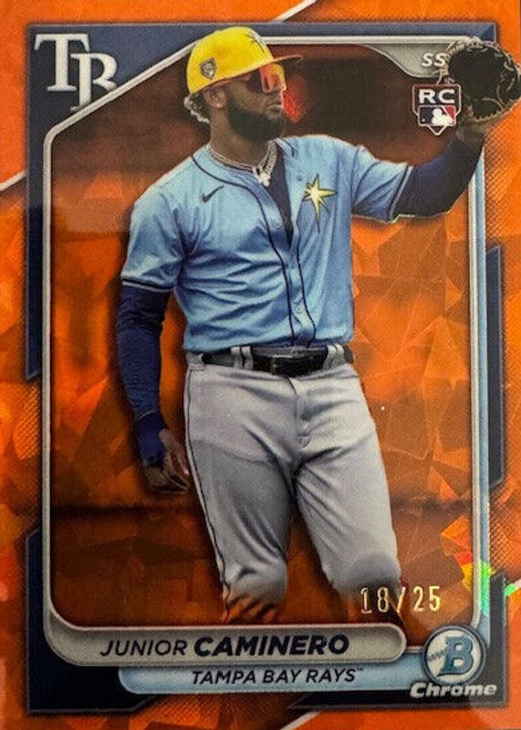 Auctions Ending Soon for Junior Caminero 2024 Bowman Chrome Sapphire Edition #56 Image Variation - Orange /25 Rookie RAW