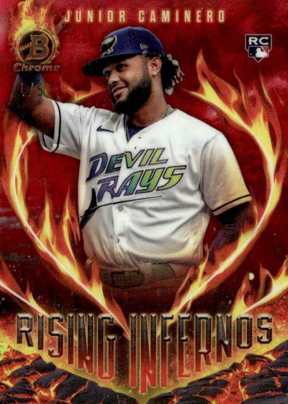 2024 Bowman Chrome Rising Infernos Red Junior Caminero Rookie 1/5 Tampa Bay Rays