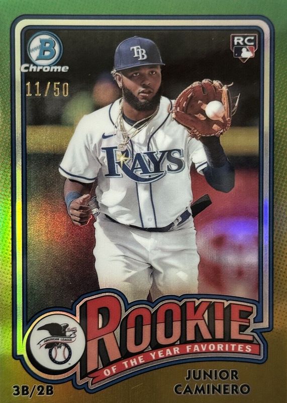 2024 Bowman Chrome Junior Caminero Gold Rookie Of The Year Favorites 36/50 Rays