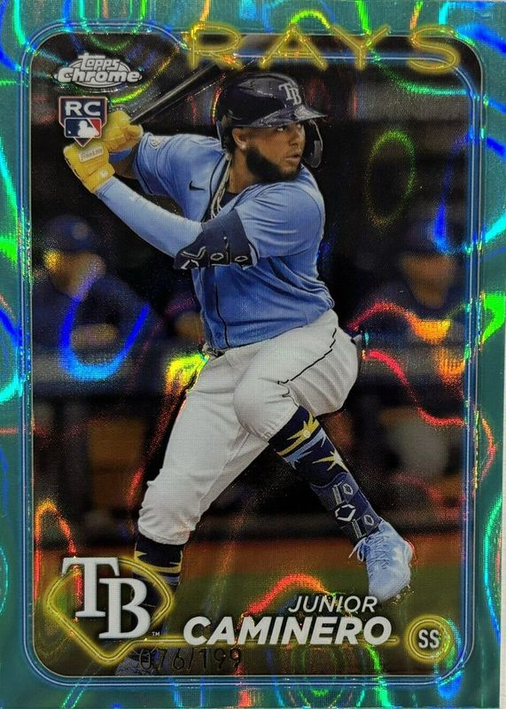 Recent Sales of Junior Caminero 2024 Topps Chrome #213 Aqua Lava Refractor /199 Rookie Raw