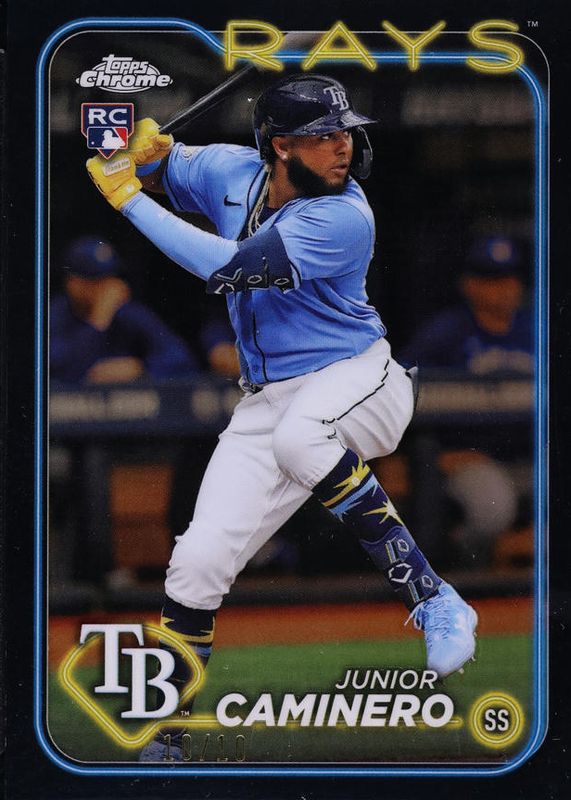 Junior Caminero 2024 Topps Chrome #213 Black Refractor /10 Rookie RAW Price Guide