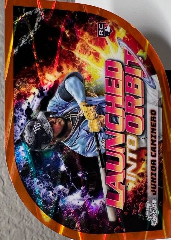 The Junior Caminero 2024 Topps Chrome Cosmic #LIO-1 Launched Into Orbit - Orange Galactic Refractor /25 Rookie card in Raw condition has not changed in price in the last 30 days and was last sold for $75.00 .