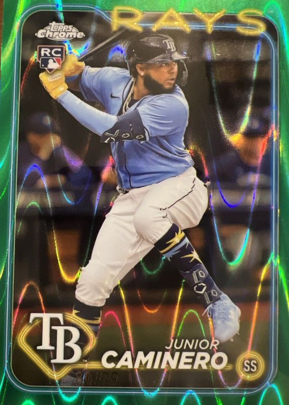 Best Prices Available For Sale of Junior Caminero 2024 Topps Chrome #213 Green RayWave Refractor /99