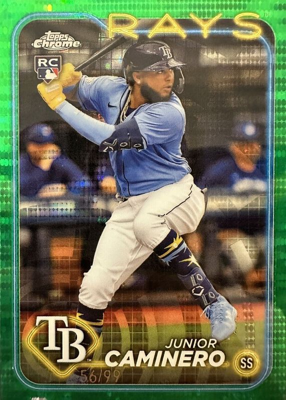 2024 TOPPS CHROME #213 JUNIOR CAMINERO GREEN SONAR REFRACTOR ROOKIE /99 pulsar