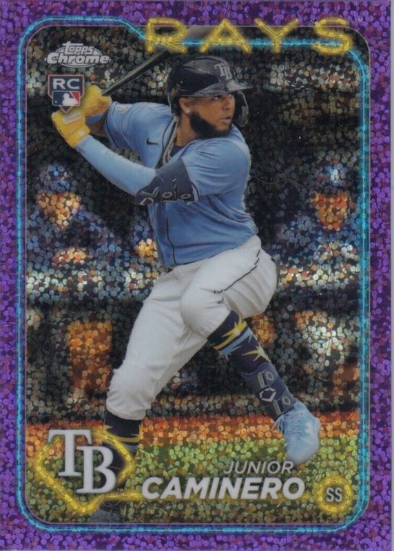 Best Prices Available For Sale of Junior Caminero 2024 Topps Chrome #213 Purple Speckle Refractor /299