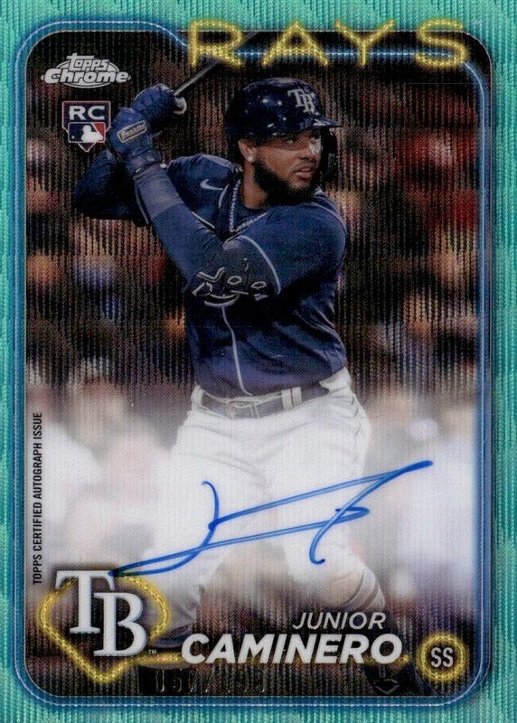 2024 Topps Chrome Junior Caminero Aqua Wave Refractor RC Auto /199 Rays #RA-JCA