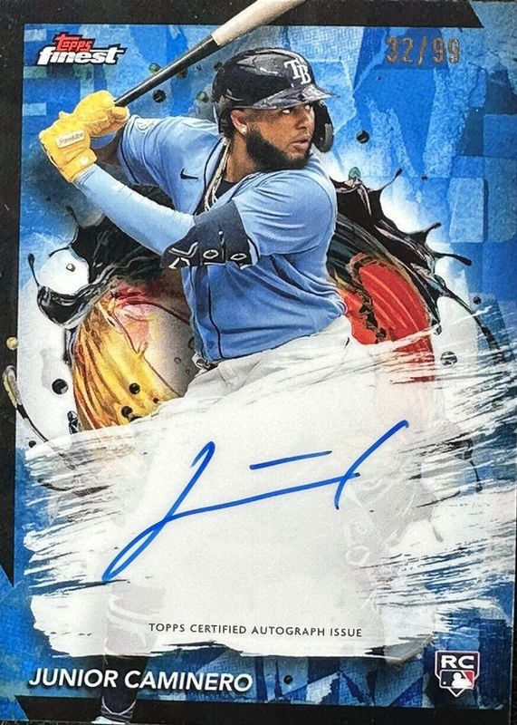 2024 Topps Finest Rookies Junior Caminero AUTO RC Blue Refractor #/99 Rays FR-JC