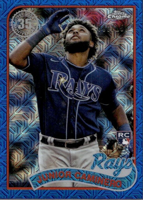 The Junior Caminero 2024 Topps Silver Pack #2T89C-63 1989 Chrome Promo - Blue Refractor (Series 2) /150 Rookie card in Raw condition has not changed in price in the last 30 days and was last sold for $29.99 .