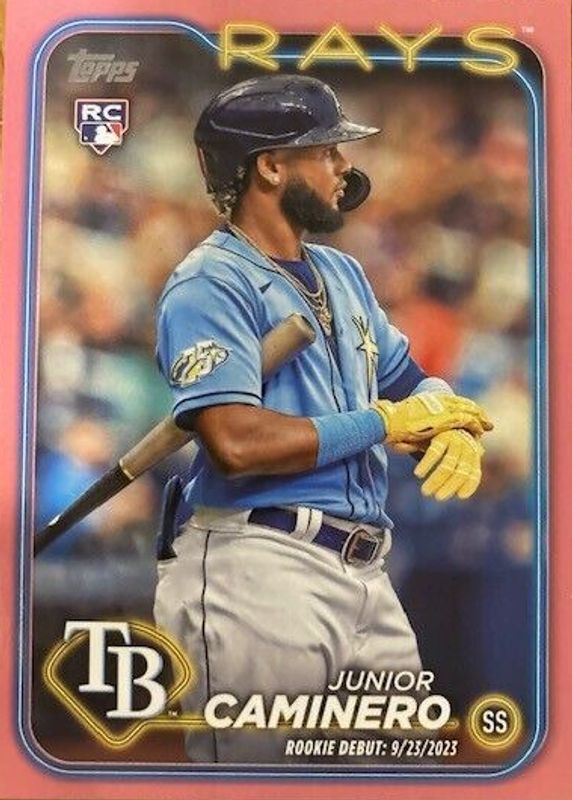 Best Prices Available For Sale of Junior Caminero 2024 Topps Update #US223 Rookie Debut - Mother's Day Hot Pink /50