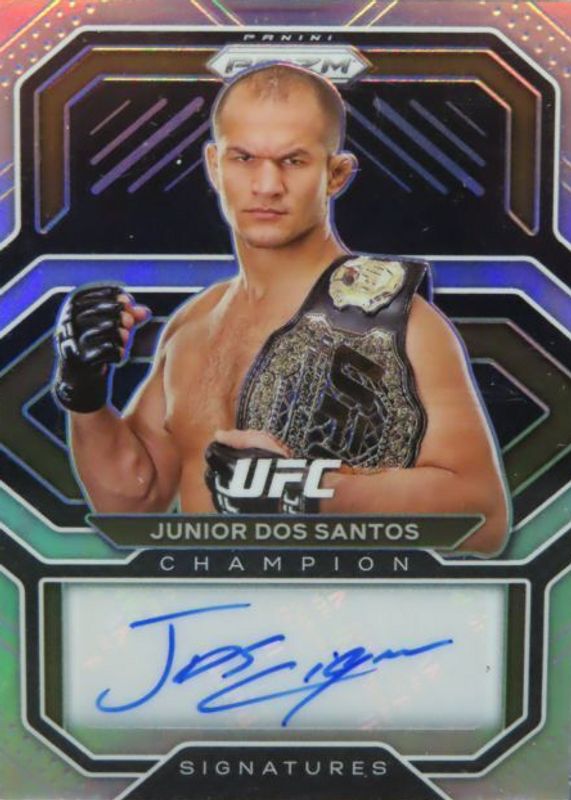 The Junior dos Santos 2021 Prizm UFC #CS-JDS Champion Signatures - Silver card in Raw condition has not changed in price in the last 30 days and was last sold for $14.00 .