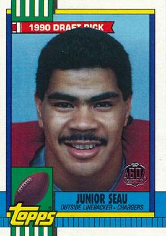 Junior Seau's Football cards are available in at least 160 sets. Junior Seau's biggest 7-day price movers are 2015 Topps #381 60th Anniversary Buybacks Silver Stamp, 2010 Certified #90 Fabric of the Game Team Die-Cut - Prime /10, and 2010 Certified #90 Fabric of the Game - Prime /50.