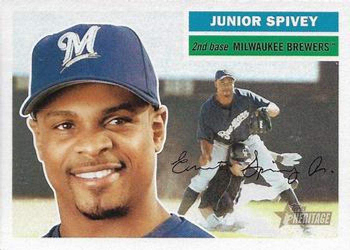 The Junior Spivey 2005 Topps Heritage #177b Base card is 1 of 2 Junior Spivey's card variations in the 2005 Topps Heritage set being tracked by Sports Card Investor, including Base.