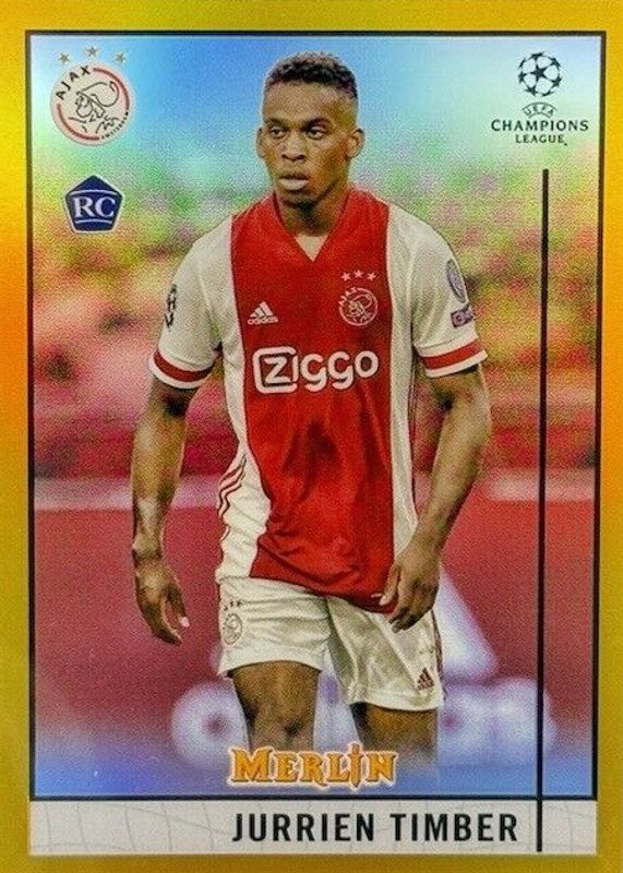Jurrien Timber 2020 Topps Merlin Chrome UEFA Champions League #9 Gold Refractor /50 Rookie RAW Price Guide
