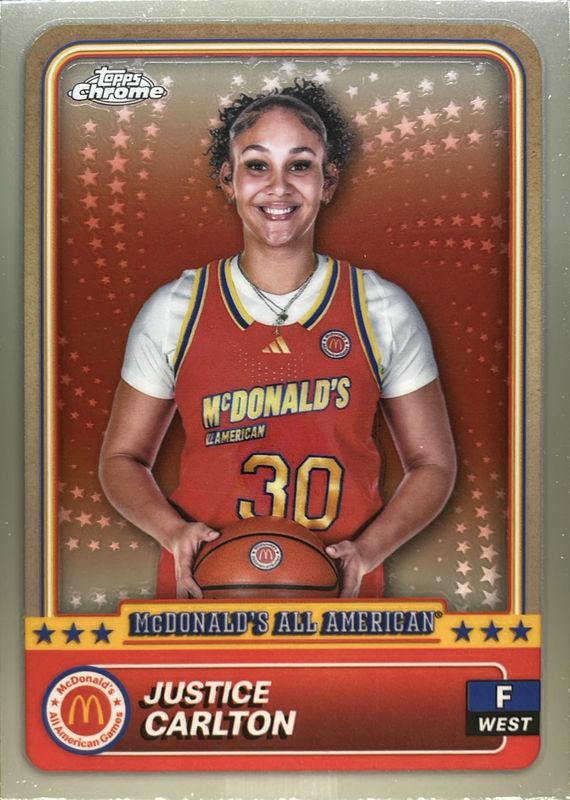 Justice Carlton 2024 Topps Chrome McDonald's All-American #65 Base RAW Price Guide