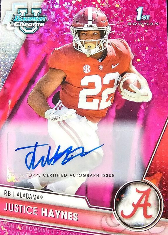 2023 Bowman Chrome University Justice Haynes 1st Fuchsia Mini-Diamnd Auto 52/150