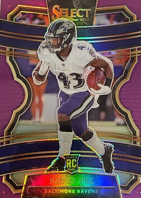 2019 Panini Select - #28 Justice Hill (RC) Purple Prizm Concourse /75 Ravens