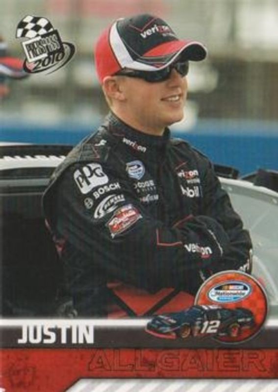 The Justin Allgaier 2010 Press Pass #41 Gold card is 1 of 18 Justin Allgaier's card variations in the 2010 Press Pass set being tracked by Sports Card Investor, including Base, Rated Rookie, Blue, Rated Rookie - Blue, and Rated Rookie - Gold.