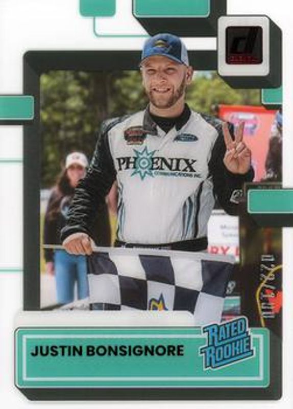 The Justin Bonsignore 2023 Chronicles NASCAR #31 Clearly Donruss - Red /100 Rookie card is 1 of 85 Justin Bonsignore's card variations in the 2023 Chronicles NASCAR set being tracked by Sports Card Investor, including Base, Blue /199, Red /99, Purple /25, and Gold /10.