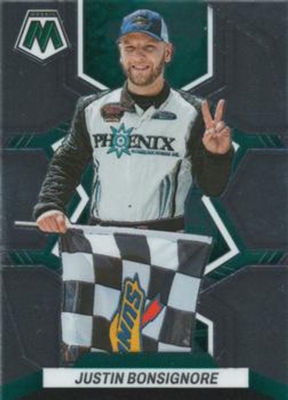 The Justin Bonsignore 2023 Chronicles NASCAR #18 Mosaic Rookie card is 1 of 85 Justin Bonsignore's card variations in the 2023 Chronicles NASCAR set being tracked by Sports Card Investor, including Base, Blue /199, Red /99, Purple /25, and Gold /10.