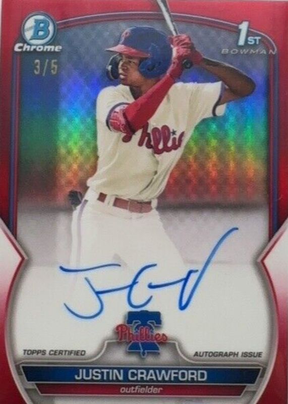 Justin Crawford 2023 Bowman #CPA-JC Chrome Prospect Auto - Red Refractor /5 (1st) RAW Price Guide