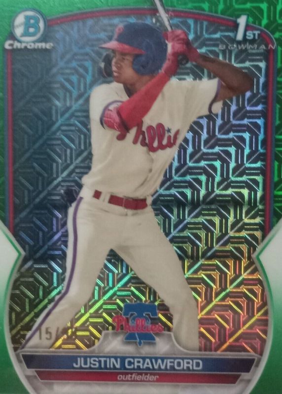 2023 Bowman Chrome JUSTIN CRAWFORD /99 Green Mojo Refractor #BCP-3 Phillies