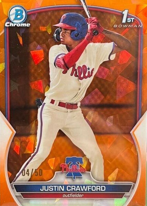 Justin Crawford 2023 Bowman Sapphire 1st #BCP3 Orange Refractor 50/50 Phillies