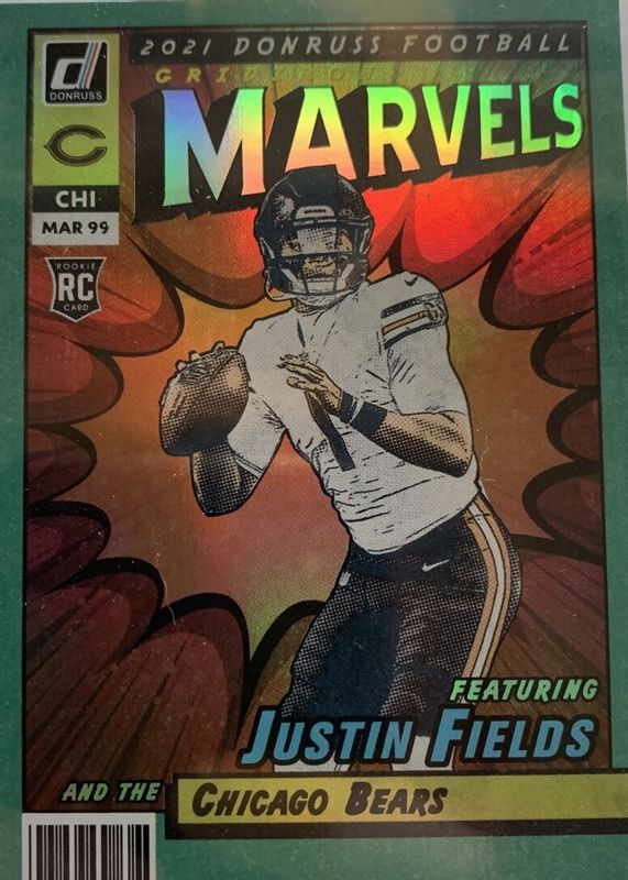 2021 Donruss Gridiron Marvels Green Foil Justin Fields Bears RC Rookie