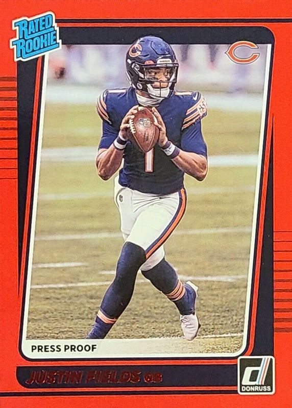 2021 Panini Donruss Justin Fields Press Proof Red RC Rated Rookie #253 Bears