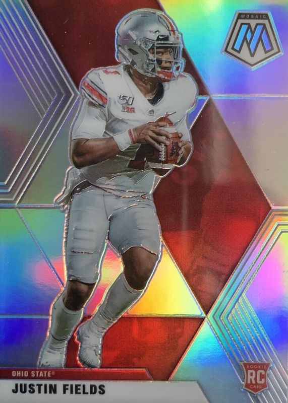 The Justin Fields 2021 Mosaic Draft Picks #8 Silver (Ohio State) Rookie card in Raw condition has not changed in price in the last 30 days and was last sold for $0.99 .