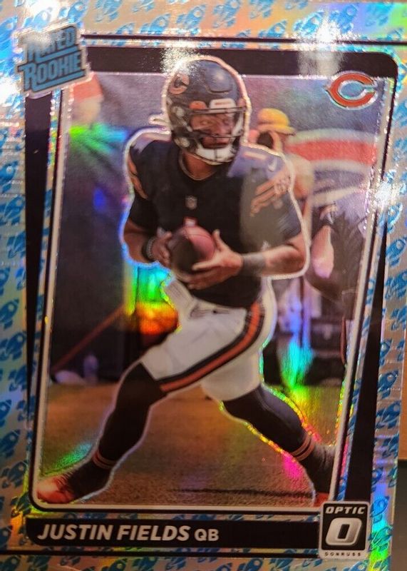 This card is 1 of 91 Justin Fields' card variations in the 2021 Optic set being tracked by Sports Card Investor, including Base, Blue Hyper, Blue Scope, Bronze, and Green Velocity.
