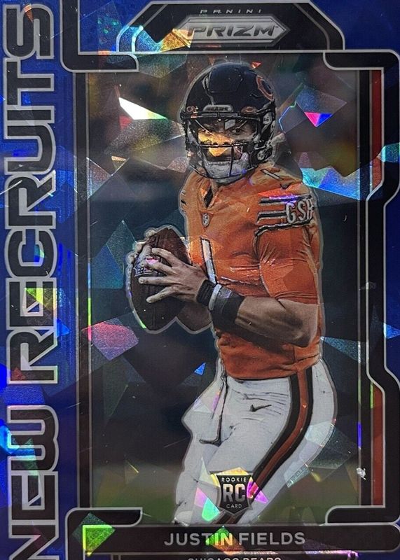 2021 Panini Prizm NR-4 Justin Fields New Recruits Blue Ice 30/99 Chicago Bears