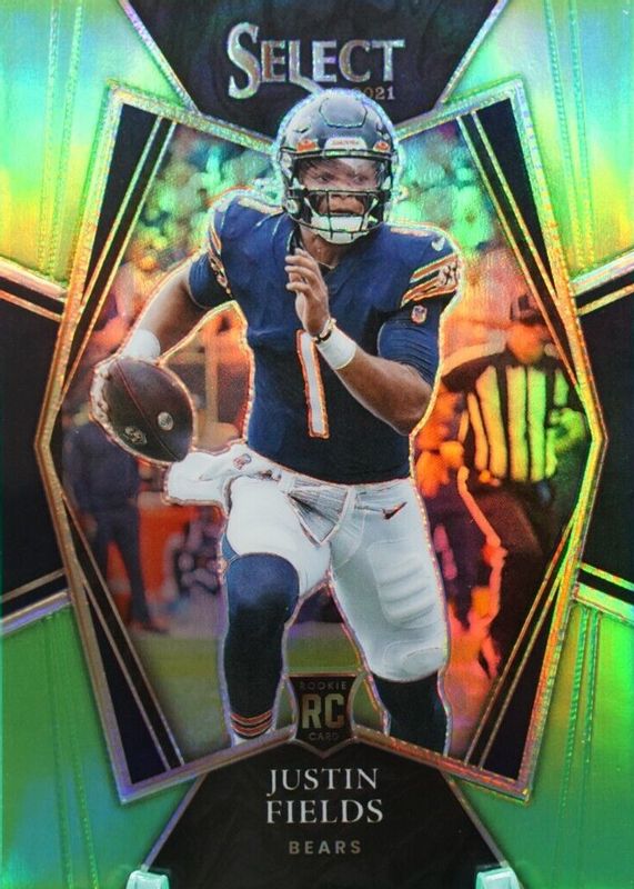 2021 Panini Select Justin Fields Premier Level Neon Green Prizm /49 RC