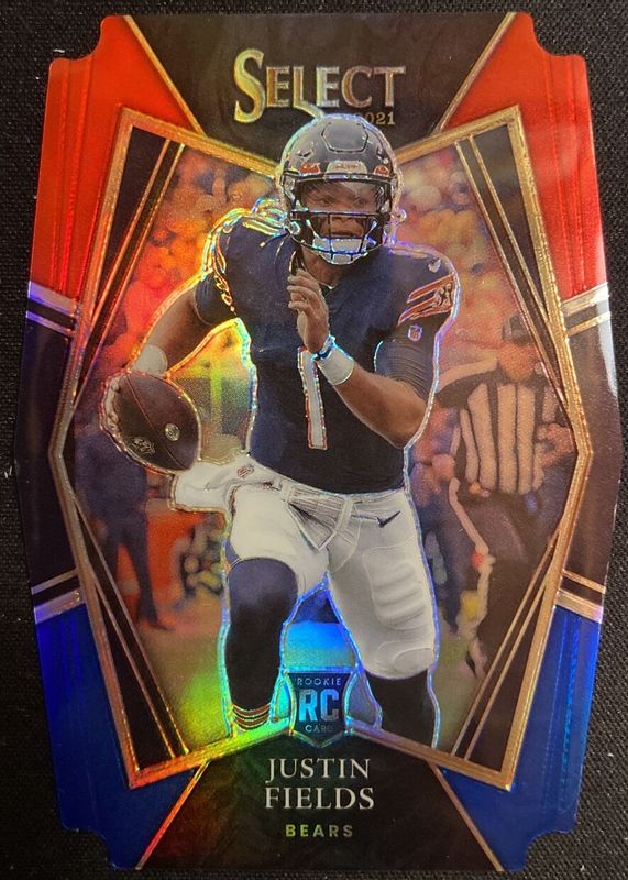 2021 Panini Select - Justin Fields - RC Premier Level Red & Blue Prizm DieCut