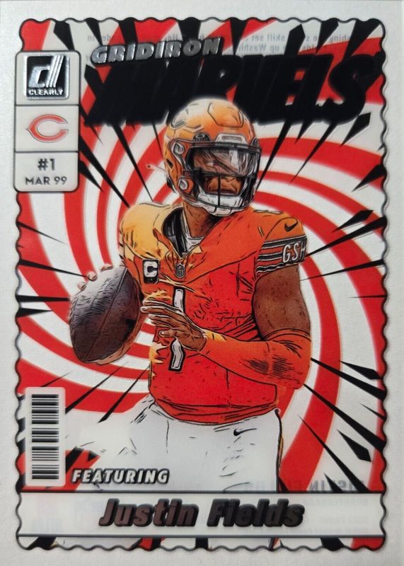 Auctions Ending Soon for Justin Fields 2023 Clearly Donruss #5 Gridiron Marvels /(SSP) RAW