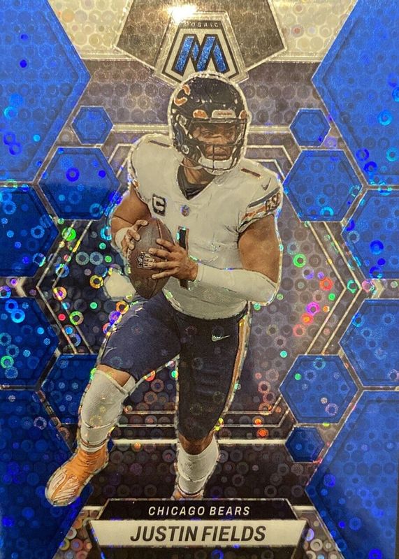 2023 Panini Mosaic Blue No Huddle Justin Fields 34/75 Chicago Bears #33