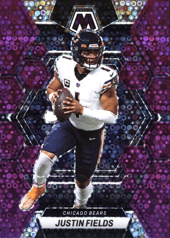 The Justin Fields 2023 Mosaic #33 No Huddle Purple /50 card in Raw condition has not changed in price in the last 30 days and was last sold for $10.49 .