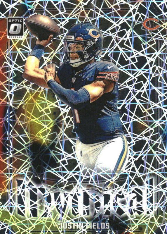 Justin Fields NM 2023 Panini Donruss Optic Mythical Laser Prizm 1 Chicago Bears
