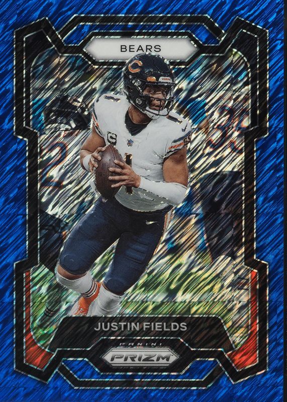 Auctions Ending Soon for Justin Fields 2023 Prizm #48 Blue Shimmer /25 RAW