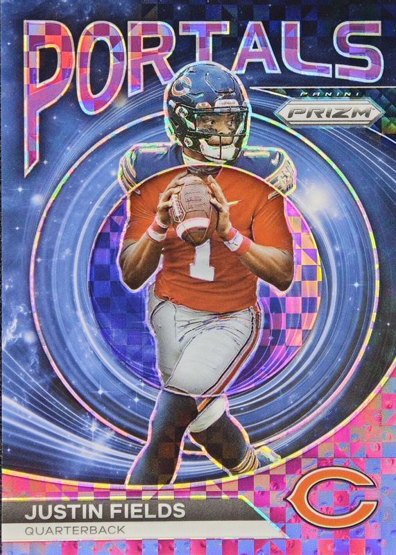 2023 Panini - Prizm Football Portals Silver Purple Plaid Justin Fields SSP 12/49
