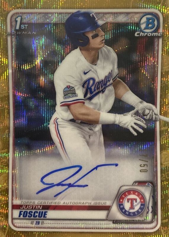 2020 Bowman Chrome Gold Wave Justin Foscue Rangers RC Rookie AUTO 29/50