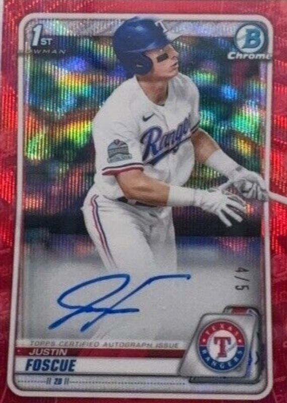 Justin Foscue 2020 Bowman Draft #CDA-JF Chrome DP Auto - Red Wave Refractor /5 (1st) RAW Price Guide