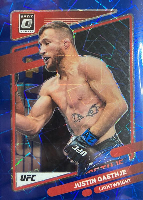 Justin Gaethje .. PRIZM BLUE VELOCITY .. UFC .. 2022 Donruss Optic PARALLEL 98