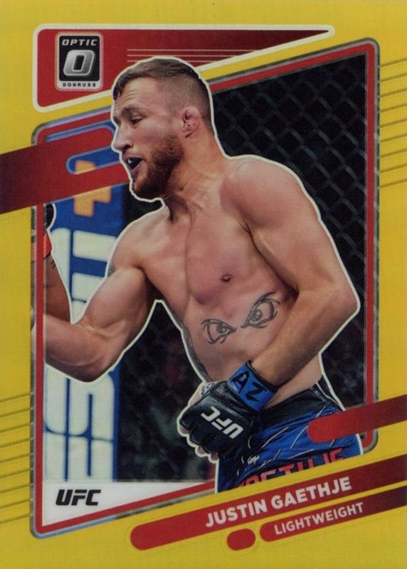 2022 Panini Optic UFC #98 Justin Gaethje Gold Prizm Optic #08/10