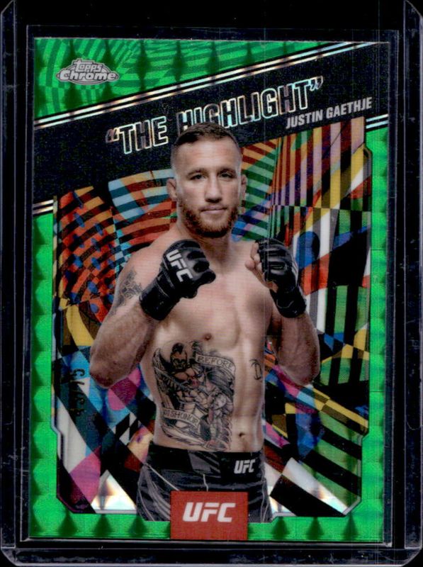 Justin Gaethje 2025 Topps Chrome UFC #AKA-3 AKA - Green Geometric Refractor /75 RAW Price Guide