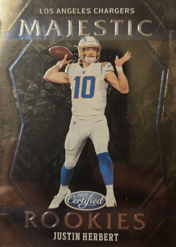 The Justin Herbert 2020 Certified #MR-3 Majestic Rookies /(SSP) card in Raw condition has not changed in price in the last 30 days and was last sold for $22.28 .