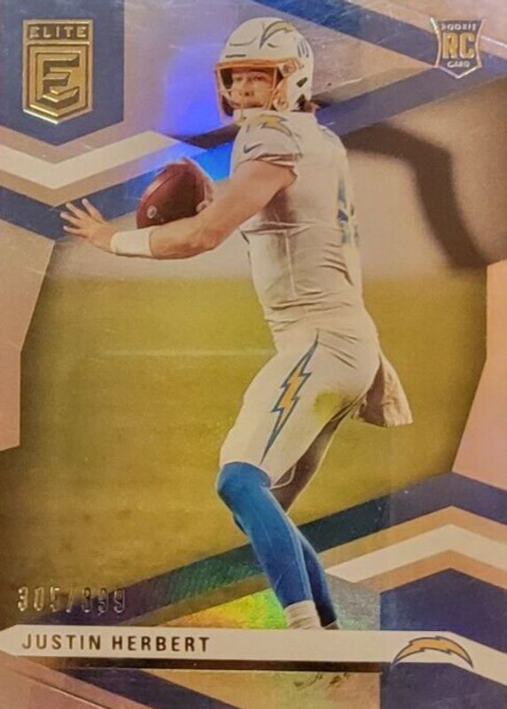 The Justin Herbert 2020 Chronicles #203 Elite Update /899 Rookie card in Raw condition has not changed in price in the last 30 days and was last sold for $5.69 .