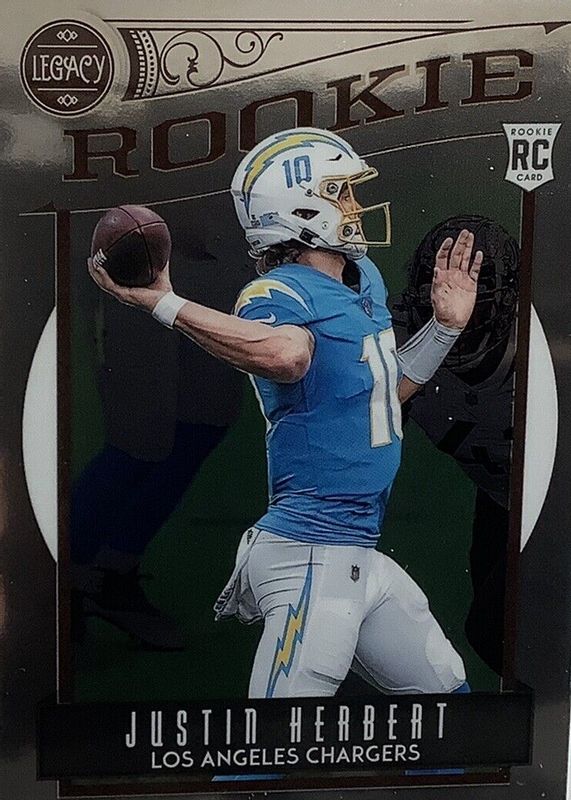 The Justin Herbert 2020 Chronicles #203 Legacy Update Rookie card in Raw condition has moved down -$3.99 (-57.1%) in the last 30 days and was last sold for $3.00 .