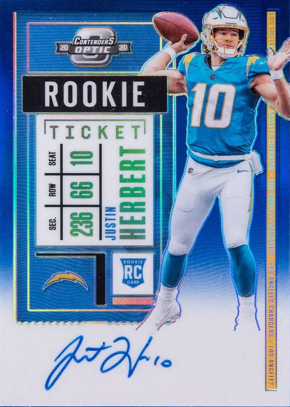 Best Prices Available For Sale of Justin Herbert 2020 Contenders Optic #104 Rookie Ticket Auto - Blue /75