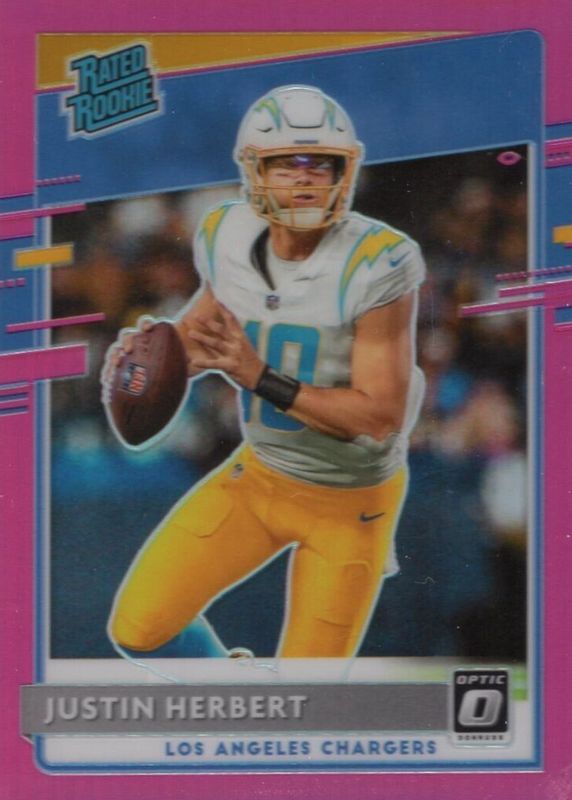 The Justin Herbert 2020 Donruss #P-303 Optic Preview - Pink Rookie card in Raw condition has not changed in price in the last 30 days and was last sold for $34.00 .