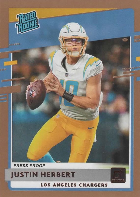 2020 JUSTIN HERBERT Panini Donruss Bronze Rated Rookie Press Proof RC Chargers